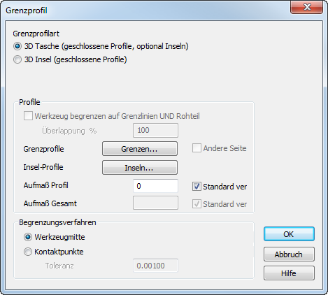 Klicken Sie, um das Grenzprofil-Formular zu öffnen, auf die Profiloptionen-Schaltfläche auf der Rohteil-Registerkarte.