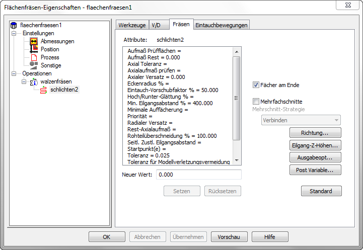 Radialer Versatz — Geben Sie den Abstand ein, um den der Werkzeugweg senkrecht zur Werkzeugachse versetzt werden soll. Der Standard ist Null.