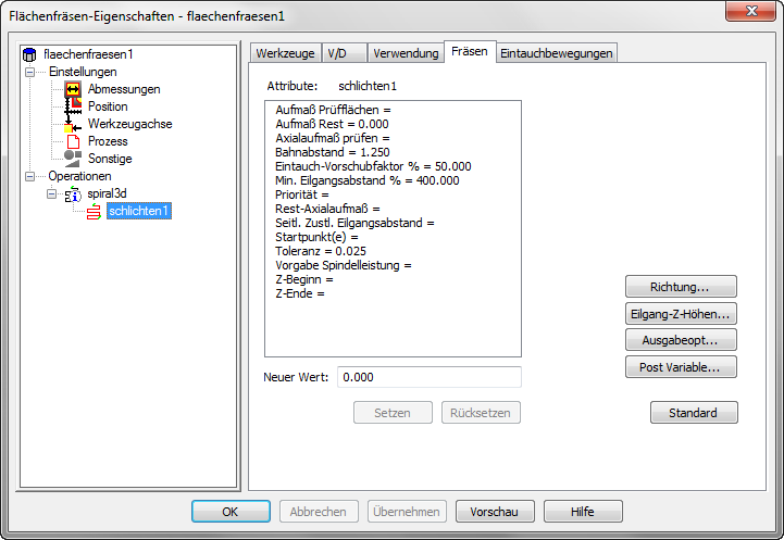 Z-Ende — Geben Sie den Abstand entlang der Z-Achse ein, unter dem keine Fräsoperation mehr möglich ist.