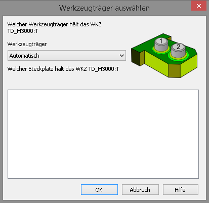 Im Dialogfeld Werkzeugträger auswählen können Sie angeben, welcher Werkzeugträger ein Werkzeug enthält.
