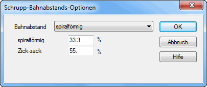 Klicken Sie auf die Schaltfläche Bahnabstands-Optionen auf der Registerkarte Strategie, um das Formular Schrupp-Bahnabstands-Optionen zu öffnen:
