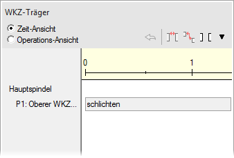Verwenden Sie die Option Zeit-Ansicht, um eine Zeitachse der Operationen für jeden Werkzeugträger im Dokument anzuzeigen.