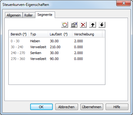 Wenn Sie zum Beispiel eine Mantelkurventrommel erstellen, die mit den folgenden Parametern um die X-Achse gewickelt ist: