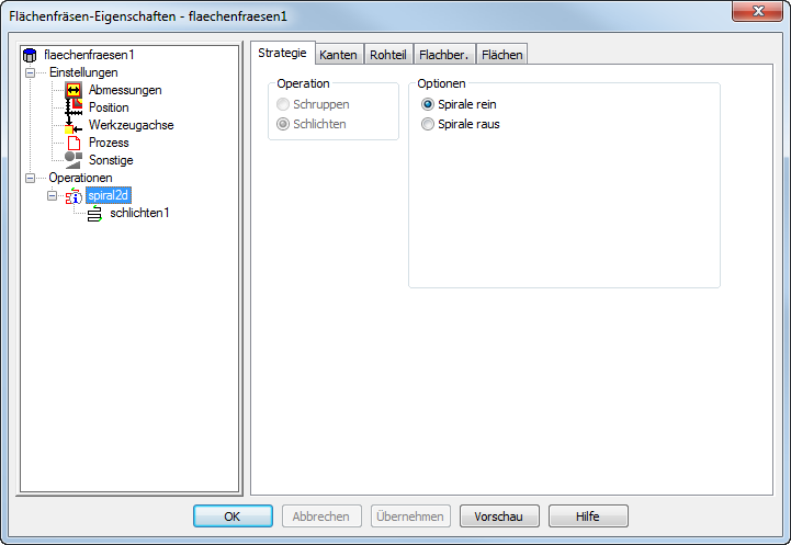 Spirale außerhalb - Wählen Sie diese Option, um spiralförmig vom Zentrum aus zu arbeiten.