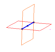 Der erste Schritt beim Flächen/Flächen-Trimmen besteht aus dem Berechnen der Verschneidung der Trimmfläche und der getrimmten Flächen. Dieser Schritt ist nur sichtbar, wenn Sie vor der Durchführung eine Vorschau der Berechnung anzeigen. Dieses Profil wird dann verwendet, um einen Teil der getrimmten Flächen abzuschneiden. Wenn es sich bei diesen Flächen um die ursprünglichen Flächen handelt, stellt das blaue Profil das Verschneidungsprofil zwischen den beiden Flächen dar.
