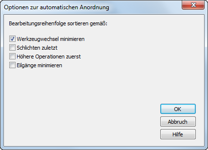 Die folgenden Einstellungen überwachen die Sortierung der Fräsoperationen.