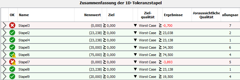 Gruppe Zusammenfassung der 1D-Toleranzstapel