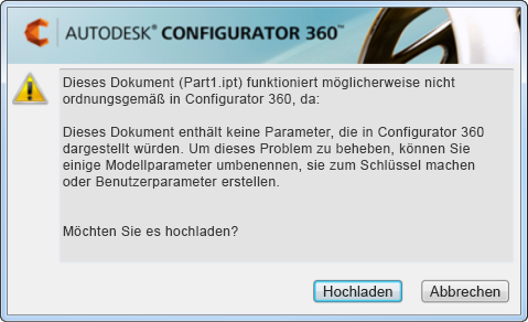 - Wenn Ihre Bauteildatei nicht richtig vorbereitet ist, wird die folgende Fehlermeldung angezeigt:
