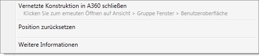 - Sie können die Schaltfläche zum Aufrufen der vernetzten Konstruktion jetzt an die von Ihnen bevorzugte Position im Grafikfenster verschieben. Mithilfe des neuen Kontextmenüs der Schaltfläche zum Aufrufen der vernetzten Konstruktion können Sie die Schaltfläche auch wieder an die vorgegebene Position verschieben.
