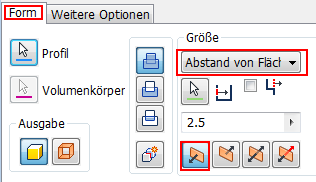 Verwenden Sie mit Abstand von Fläche und Richtung 1 oder Richtung 2 auf der Registerkarte Form die Optionen auf der Registerkarte Weitere Optionen, um unterschiedliche Ergebnisse zu erzielen.