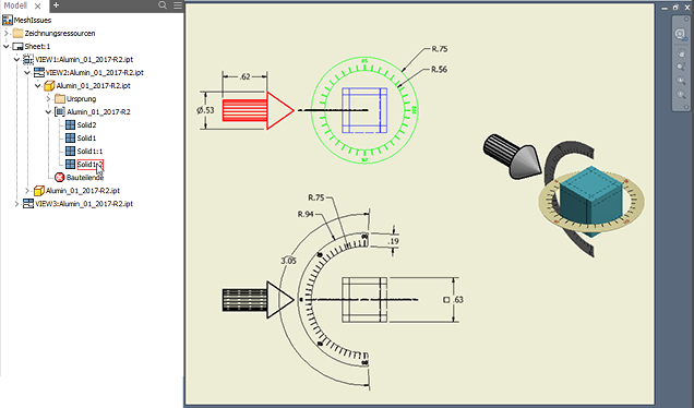 DEAKTIVIERT. Wenn Sie eine Ansicht platzieren, klicken Sie auf die Registerkarte Wiederherstellungsoptionen, und geben Sie Ihre Ansichtsvoreinstellungen an. Beim Arbeiten mit Netzobjekten in einer Zeichnungsansicht können Sie Folgendes beobachten: