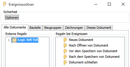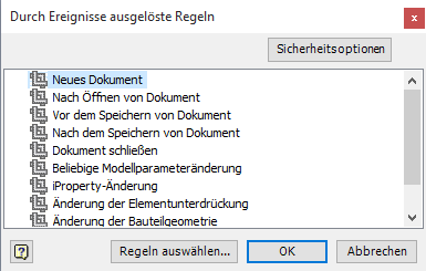 • In der Datei RulesOnEvents.xml werden die externen Auslöser für alle Dokumente, Bauteile, Baugruppen und Zeichnungen gespeichert.