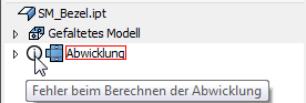 Bei einer Überschreibung eines älteren Abwicklungsstanzens wird weiterhin ein Fehler angezeigt, bis die Abwicklung gelöscht und in Inventor 2017 neu erstellt wird.