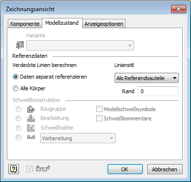 Überarbeitetes Dialogfeld Zeichnungsansicht