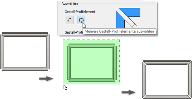Weitere Informationen zu Gehrung und Nut erhalten Sie unter Ändern von Endenbearbeitungen und Anwenden von Endenbearbeitungen auf Gestelle.