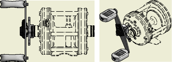 In der folgenden Abbildung wird die übergeordnete Ansicht durch die schattierte Griffbaugruppe dargestellt. Die Überlagerung ist eine weitere Ansichtsdarstellung, die den Rest der Komponenten als gestrichelte Linien zeigt.
