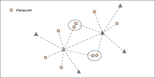 Liegen z. B. zwei verschiedene Feldcodes innerhalb der Toleranz, behalten Sie beide Punkte bei, wenn diese für zwei verschiedene Objekte der realen Welt stehen. Beide Punkte werden dann in die Ausgleichungsberechnung aufgenommen.