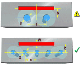 Der optimale Abstand richtet sich nach dem Durchmesser des Kühlkanals und der Dicke des Formteils. Im nachstehenden Diagramm wird ein angemessener Abstand zwischen den Kühlkanälen gezeigt, bei dem der Durchmesser von D 10-14 mm beträgt, und der Abstand a 3D bis 5D ist.