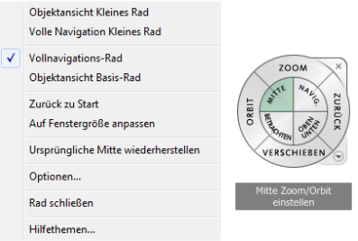 | Objektansicht-Basisrad | Zeigt das große Objektansicht-Rad an. |