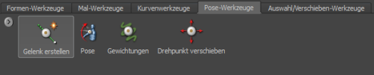 Beide Elemente geben interaktives Feedback zum Einflussbereich eines Gelenks, und dazu, wie Verformungen in Bezug auf das Gelenk auftreten, wenn Sie das Pose-Werkzeug verwenden.