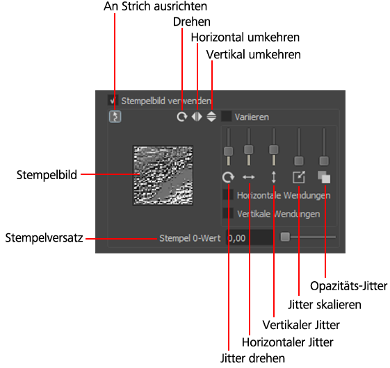 Das Stempelbild wird im Fenster Eigenschaften für das Formen angezeigt, Stempelbild verwenden ist aktiviert.