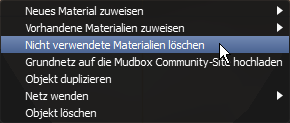 - Klicken Sie mit der rechten Maustaste auf ein Netz, und wählen Sie Nicht verwendete Materialien löschen aus.