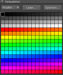 In den Farbpaletten können Sie bis zu 256 Farben pro Palette speichern.