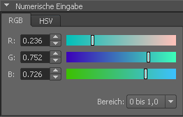 Numerische Farbwerte werden im Abschnitt Numerische Eingabe eingegeben.