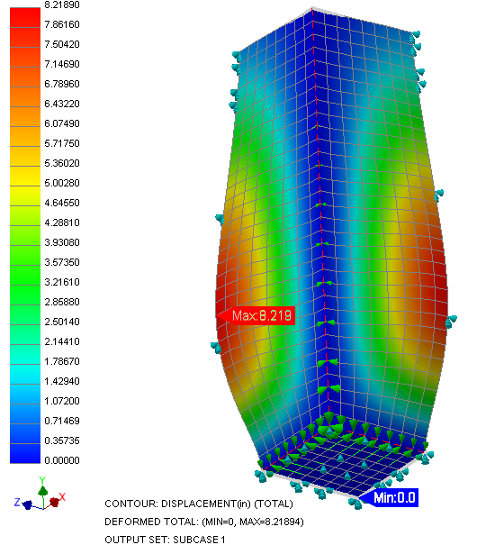 In this exercise, we will conduct a nonlinear static analysis to explore the phenomenon of stress stiffening. The subject model is a flat walled tank that is 48 inches x 48 inches x 96 inches tall. The walls of the tank are flat and are subject to pressure loading which may lead to large deformation effects.