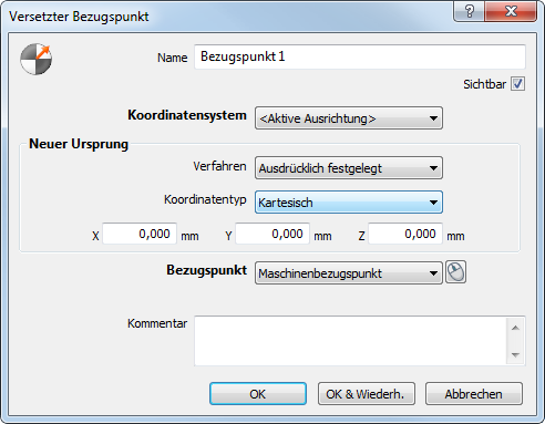 - Wählen Sie in der Koordinatensystem-Liste das Koordinatensystem aus, das sich relativ zu dem Bezugspunkt verhält.