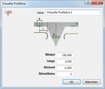 Anmerkung: Die Option Virtuelle Prüflehre steht nur beim Erstellen von Prüfungen für CNC- und manuelle Maschinen zur Verfügung.
