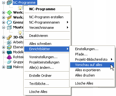 Dadurch werden mehrere HTML-Dateien im Projektordner erstellt, und die PowerMill-Browser-Registerkarte mit den Einrichtblättern wird geöffnet.