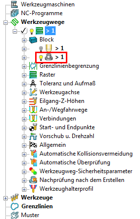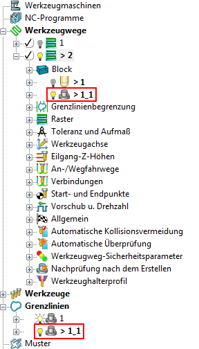 Die Grenzlinie wird nicht mehr im Grenzlinie-Zweig des Explorers angezeigt. Sie wird stattdessen im individuellen Werkzeugweg-Zweig des Explorers angezeigt.