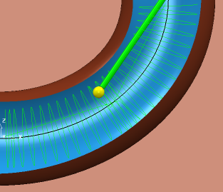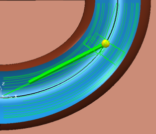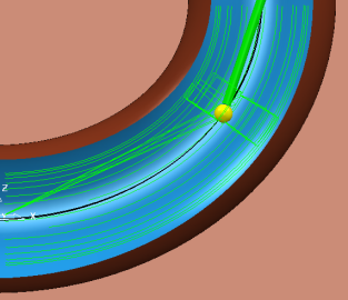 Überlappung — Geben Sie den Abstand ein, der auf dem Verbindungspunkt zentriert ist, um den die Werkzeugwege überlappen. Es handelt sich hierbei um einen tatsächlichen Wert (keinen Prozentsatz).