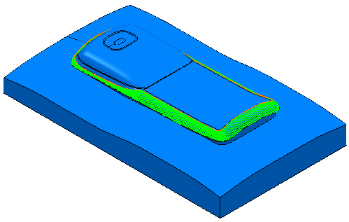 Verwenden Sie die Parametrisches Konturschlichten-Strategie, um eine Bearbeitung zwischen zwei Kurven vorzunehmen. Diese Strategie verwendet die Regelungen zwischen zwei Kurven, um einen parametrischen Konturschlichtwerkzeugweg zu erstellen.