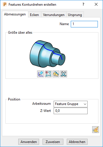 Festlegen der Bemaßungen für ein Profildrehen-Feature