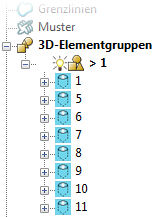 Durch Auswahl von Verbundbohrungen auftrennen im Menü eines individuellen Bohr-Featuresets werden die Verbundbohrungen in ihre individuellen Bohrungskomponenten umgewandelt.