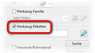 Sie können mithilfe von Werkzeug-Etiketten in der Werkzeugdatenbank nach Werkzeugen suchen. Dies erleichtert die Suche nach Werkzeugen.