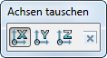 - Klicken Sie auf Arbeitsebeneneditor-Registerkarte > Umformen-Gruppe > Achsen tauschen, um die Achsen tauschen-Symbolleiste anzuzeigen, bei der die Schaltfläche Z-Achse angeben