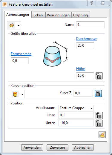 Durchmesser – Geben Sie den Durchmesser des Features ein.
