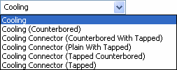 Der Kühlungsassistent verwendet alle verfügbaren, passenden Volumen-Bohrungstypen, was Ihnen erlaubt, Durchmesser und Tiefen zum Bohren, Gewindebohren, Vorbohren des Gewindes und für Zylindersenkungen zu definieren.