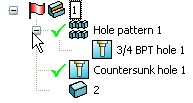 Wenn diese Option bei der Mustererstellung abgewählt ist, wird das Muster als separates Merkmal erstellt. Das Original- sowie das Mustermerkmal können unabbhängig voneinander bearbeitet werden. Der Volumenmodell-Baum zeigt sowohl das Merkmalsymbol als auch das Mustersymbol an.