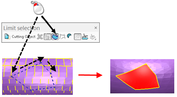 in der Begrenze an Auswahl-Symbolleiste, um eine temporäre zusammengesetzte Kurve zu erstellen. Diese zusammengesetzte Kurve wird zum schneidenden Objekt und wird automatisch gelöscht, wenn es nicht mehr benötigt wird.