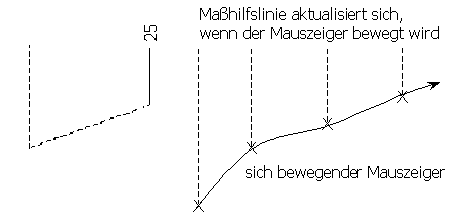 Eine Gummiband-Maßhilfslinie wird an den Mauszeiger angefügt. Sobald Sie die Maus bewegen, verändert sich diese Linie: