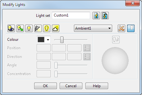Verwenden Sie das Dialogfeld Lichtquellen ändern, um die Beleuchtung für die ausgewählte Beleuchtungsgruppe individuell anzupassen.