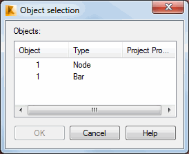 Sometimes it is difficult to select elements using the mouse when designing a structure, especially a large one. The Object selection dialog lets you specify the exact element you want to select.
