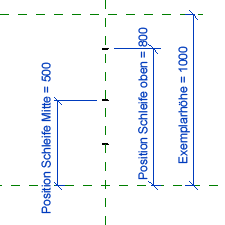 - Geben Sie die Formel Exemplarhöhe > 1000 für den neuen Parameter Mittlere Schleife sichtbar ein. Diese Formel bewirkt, dass die mittlere Schleife nur dann angezeigt wird, wenn die Exemplarhöhe der Familie größer ist als 1 Meter. Andernfalls sind nur die obere und untere Schleife sichtbar.