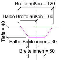 - In der Vorderansicht muss die Geometrie unterhalb der horizontalen Referenzebene skizziert und relativ zur vertikalen Referenzebene zentriert ausgerichtet werden.