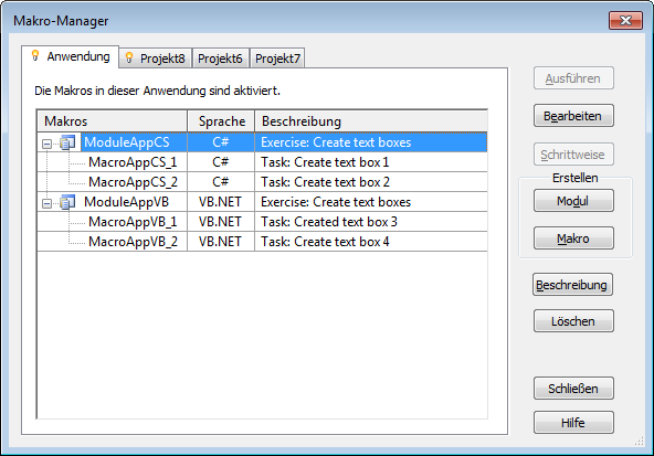 Mithilfe von Makro-Manager können Sie Ihre Makros verwalten und ausführen.