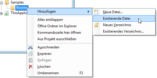 Klicken Sie im Projektexplorer der IDE mit der rechten Maustaste auf das Makroprojekt, und wählen Sie Hinzufügen